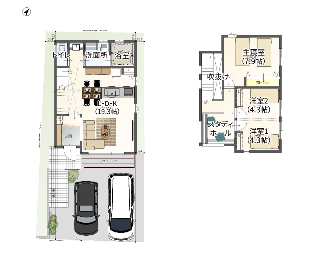 この分譲地に建てられるプラン例