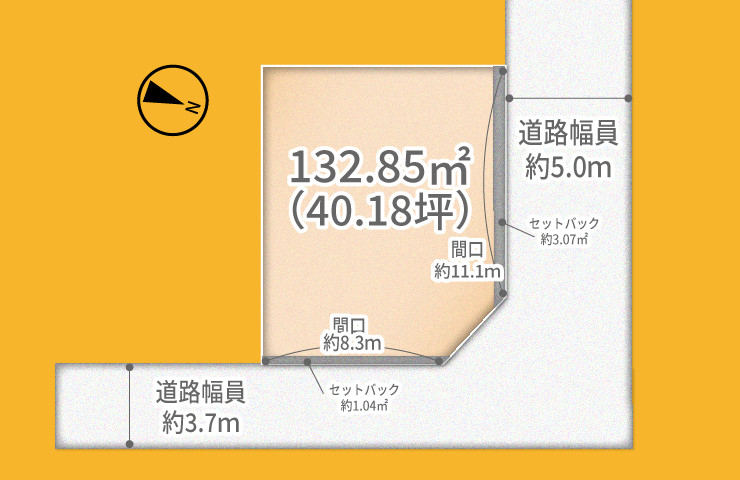 | 接道幅 | 北側 11.1m/東側 8.3m |