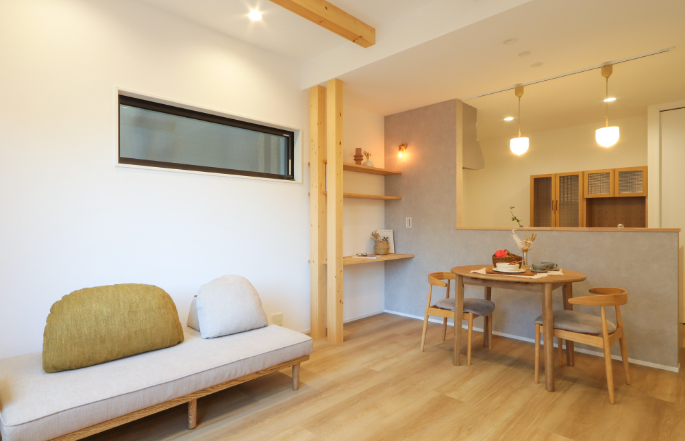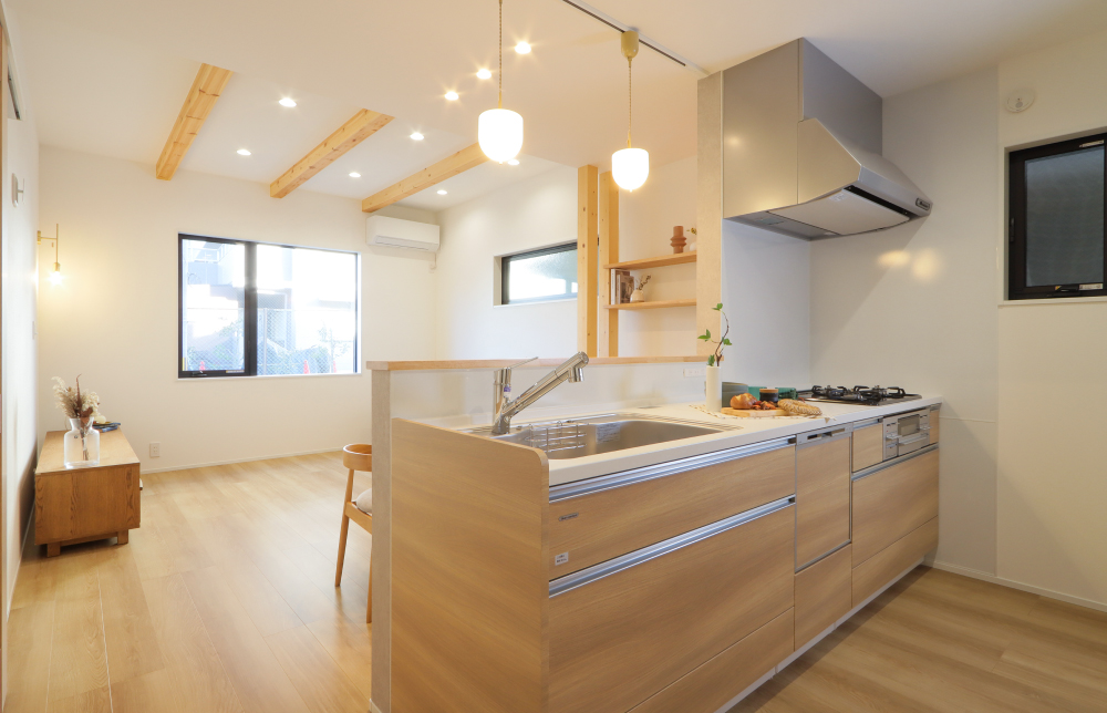 対面キッチンや高天井のリビング、スタディースペースを通じて、自然な会話と安心感を育む住まい。
