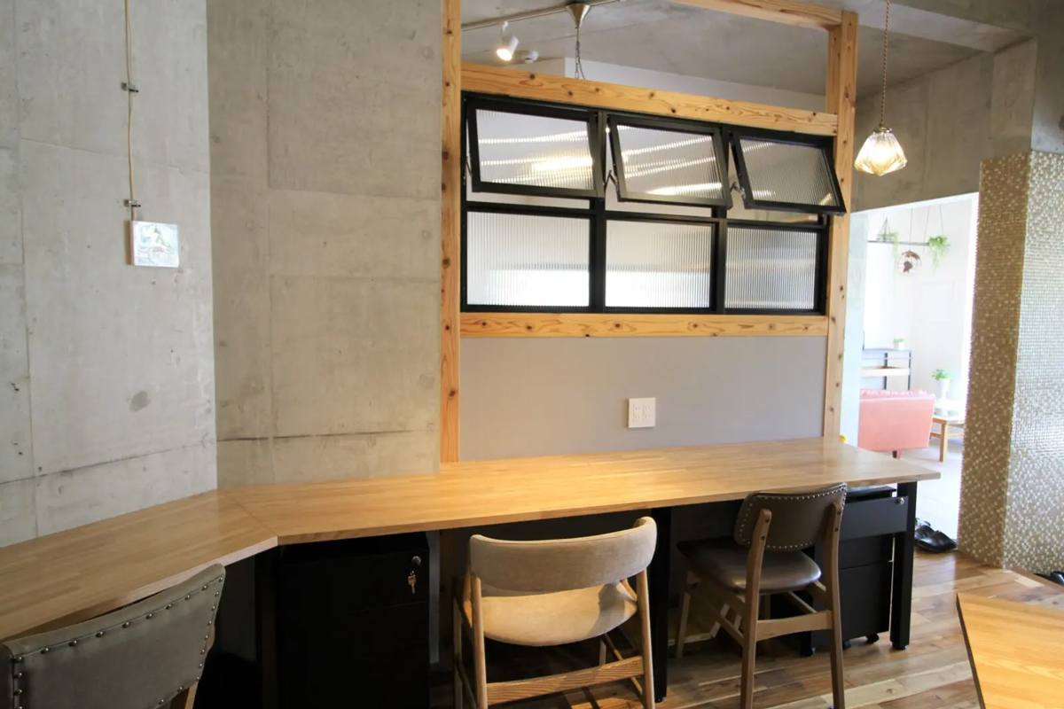 アトリエ・クラッセ オフィスの造作カウンターデスク。