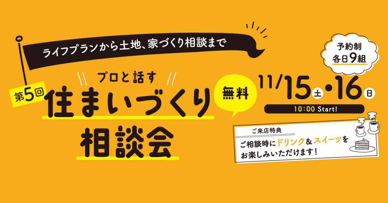 前回大好評だった「第5回 住まいづくり相談会 初級編」を、アトリエ・クラッセ 一級建築士事務所(宇治市宇治乙方63 cozy 宇治橋1F)で11月15日(土)・16日(日)に開催いたします!
