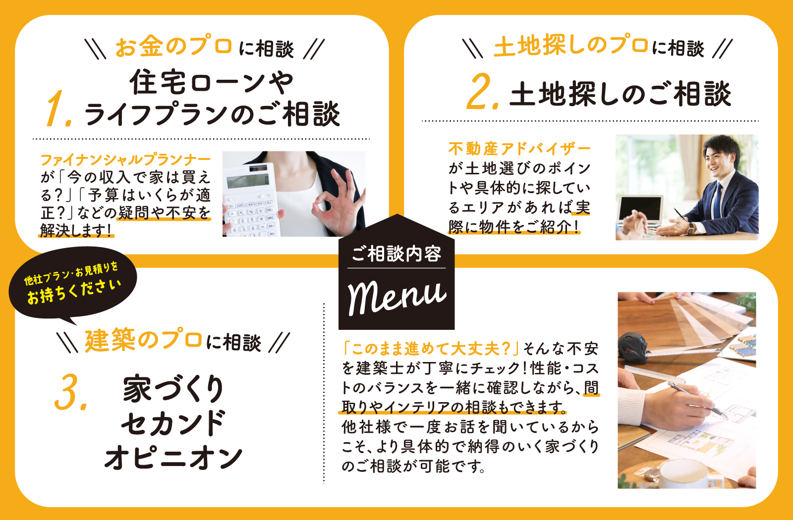 セカンドオピニオン・ライフプラン・土地相談 の3本立◎