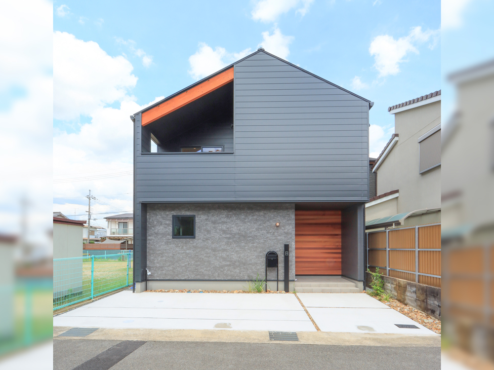 隣地が公園のため視線を気にすることがないよう2階リビングを採用し、住まい全体に“開放感”と“使いやすさ”を散りばめました。外観はブラックガルバ×レッドシダーでスタイリッシュに仕上げ、2Fリビングは勾配天井とロフトで広がりを感じられる空間に。キッチンはコンクリート調でまとめ、ダイニング照明も相性の良いデザインを採用しています。リビング横のバルコニーは、心地よい時間を過ごせる場所に。収納や趣味に使える大型ロフトや、将来分割できる1F洋室など、暮らし方に寄り添う工夫も詰め込みました。