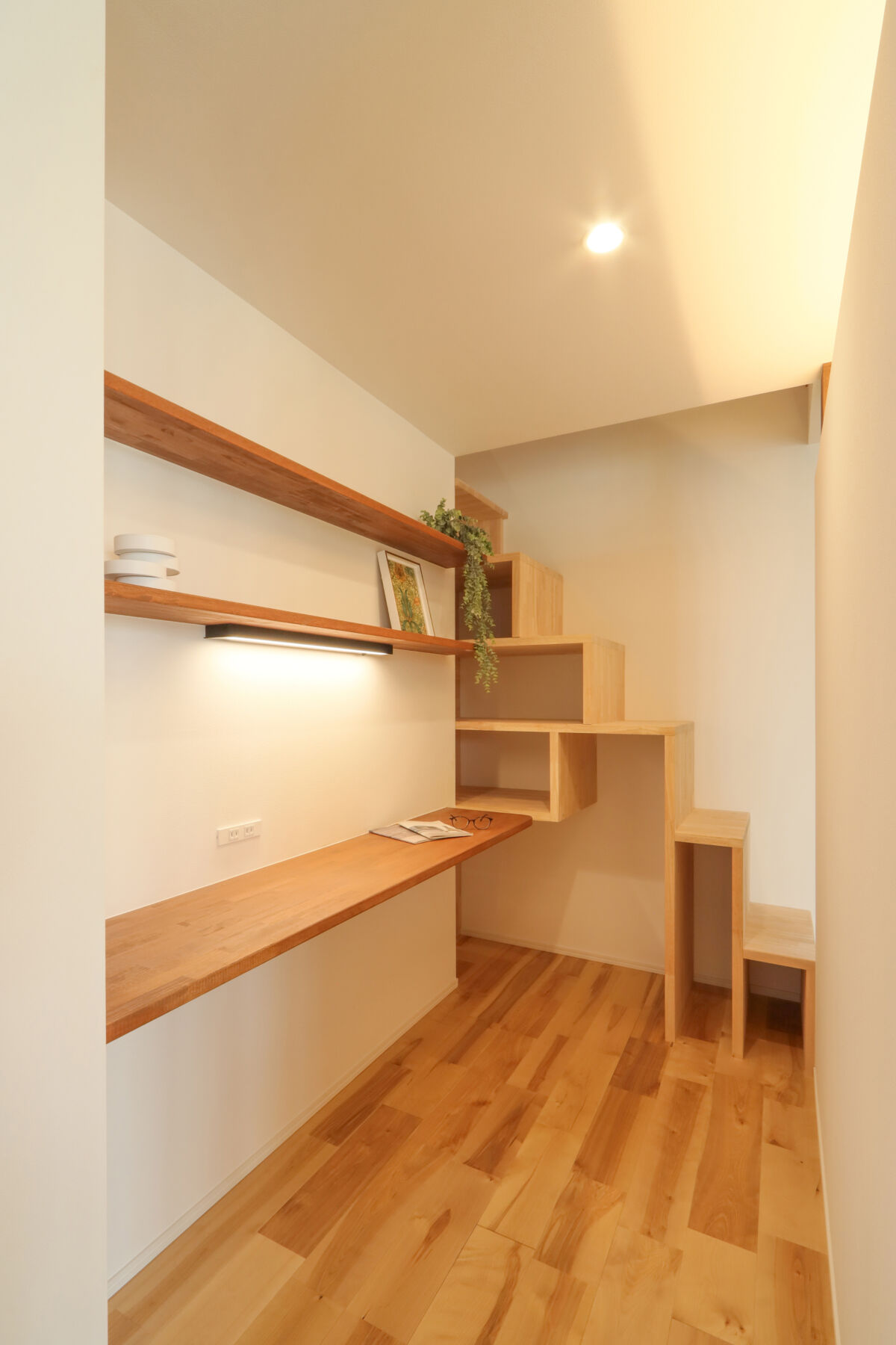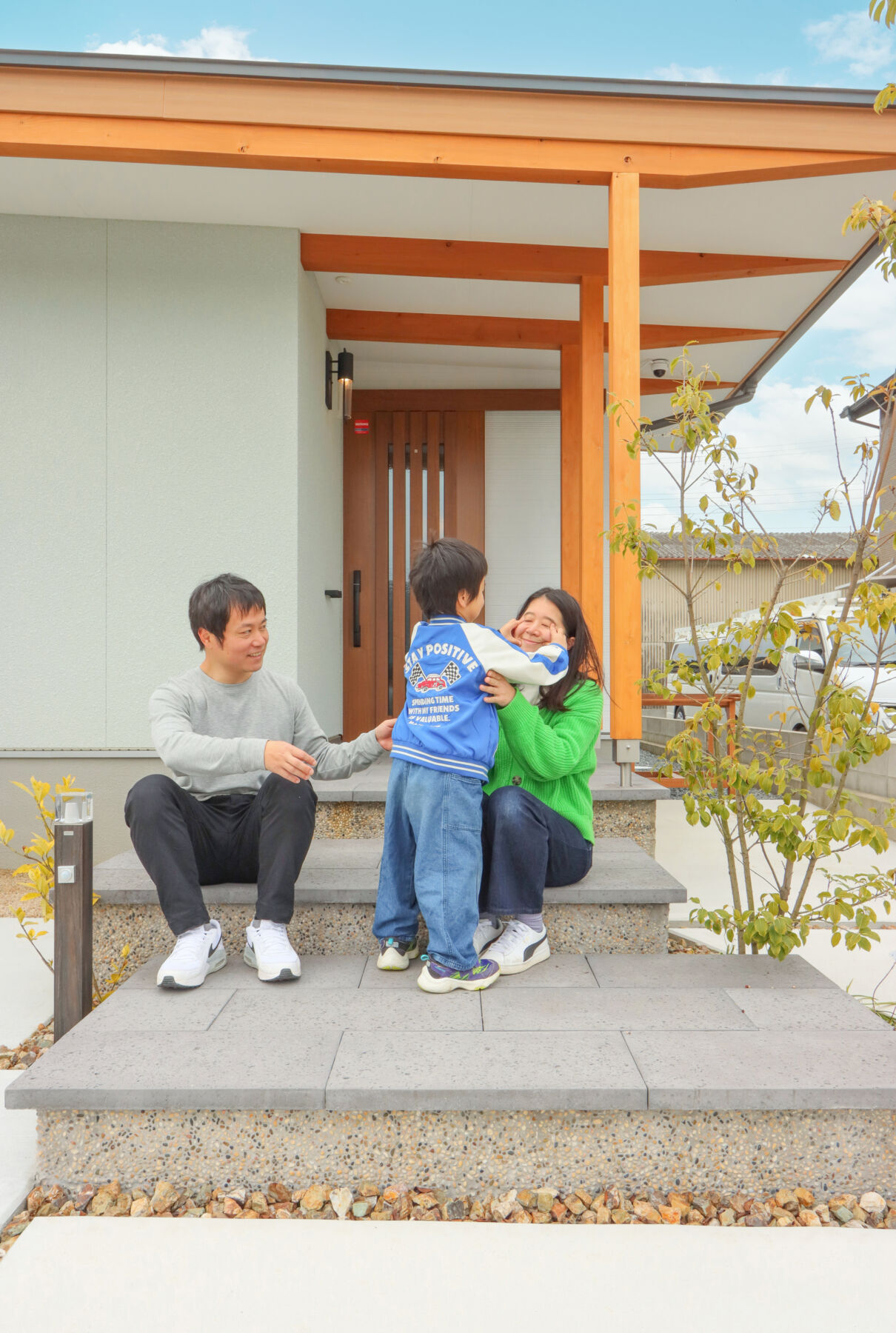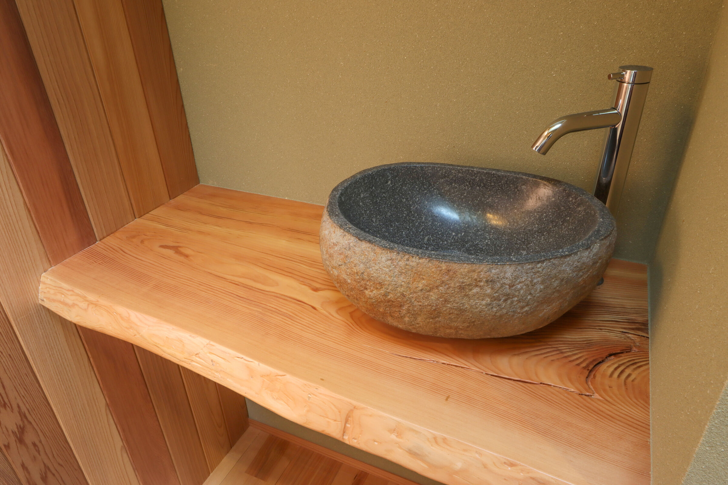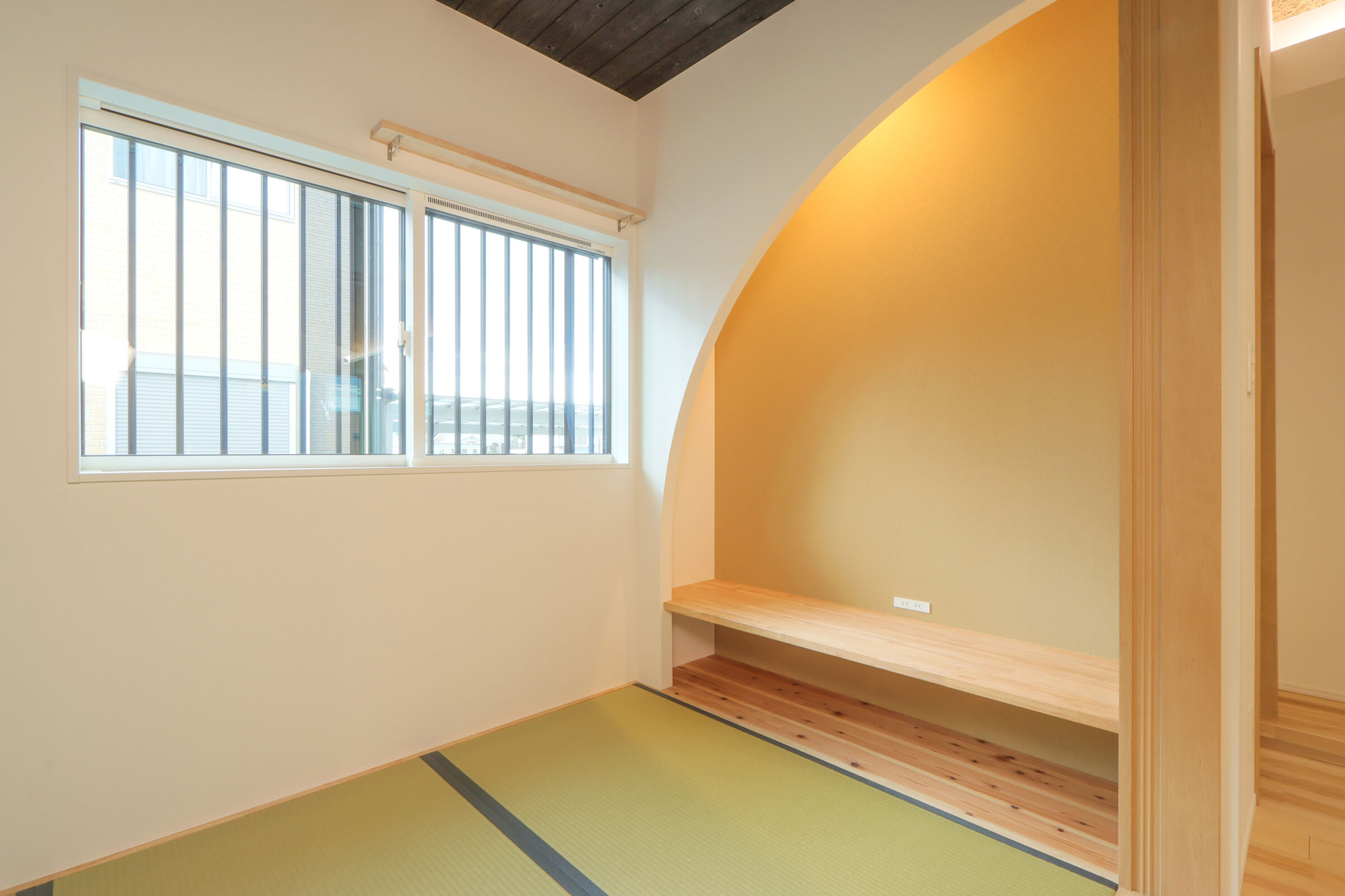 大きな窓の先に広がる景色を、日常の一部として楽しむ和モダンな平屋。無垢材や左官仕上げなど素材の表情を活かしながら、凹凸のある空間構成で奥行きと落ち着きを演出。家事動線や収納計画にも配慮し、見た目の美しさと暮らしやすさを両立した住まいです。