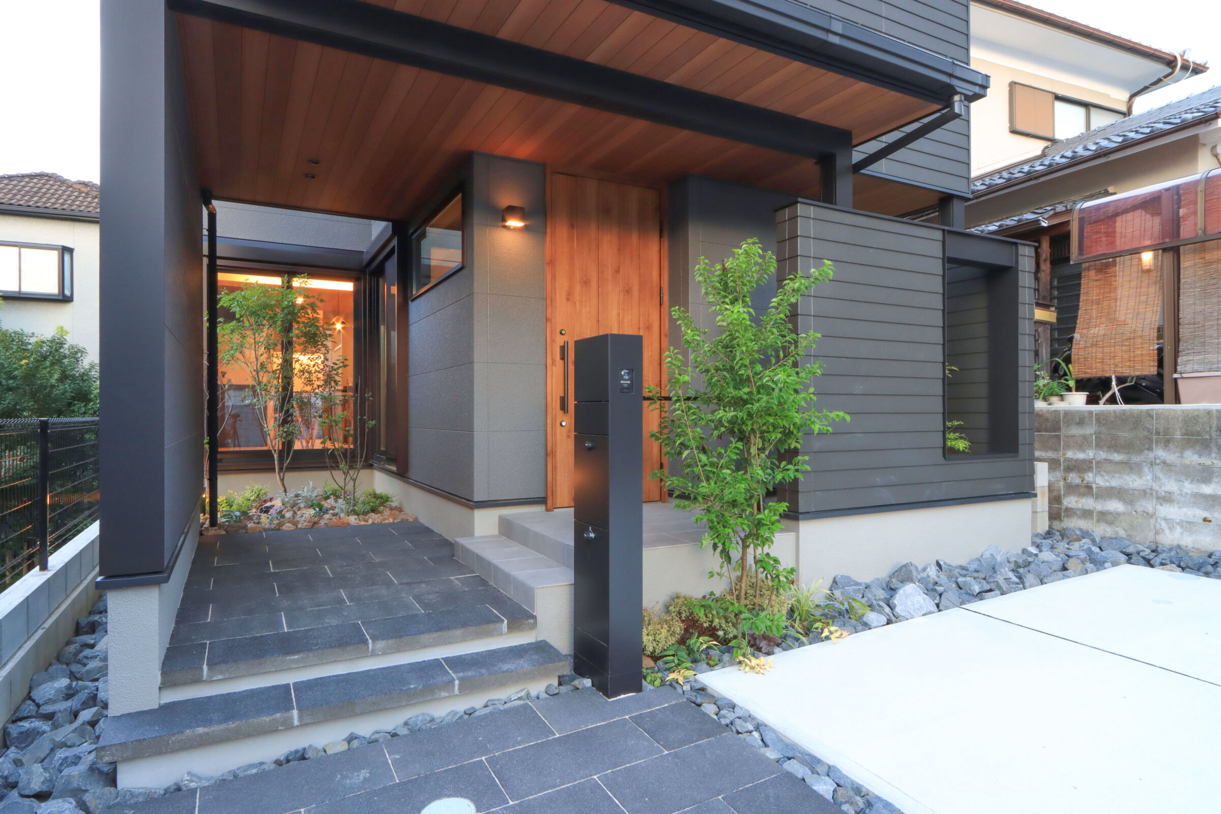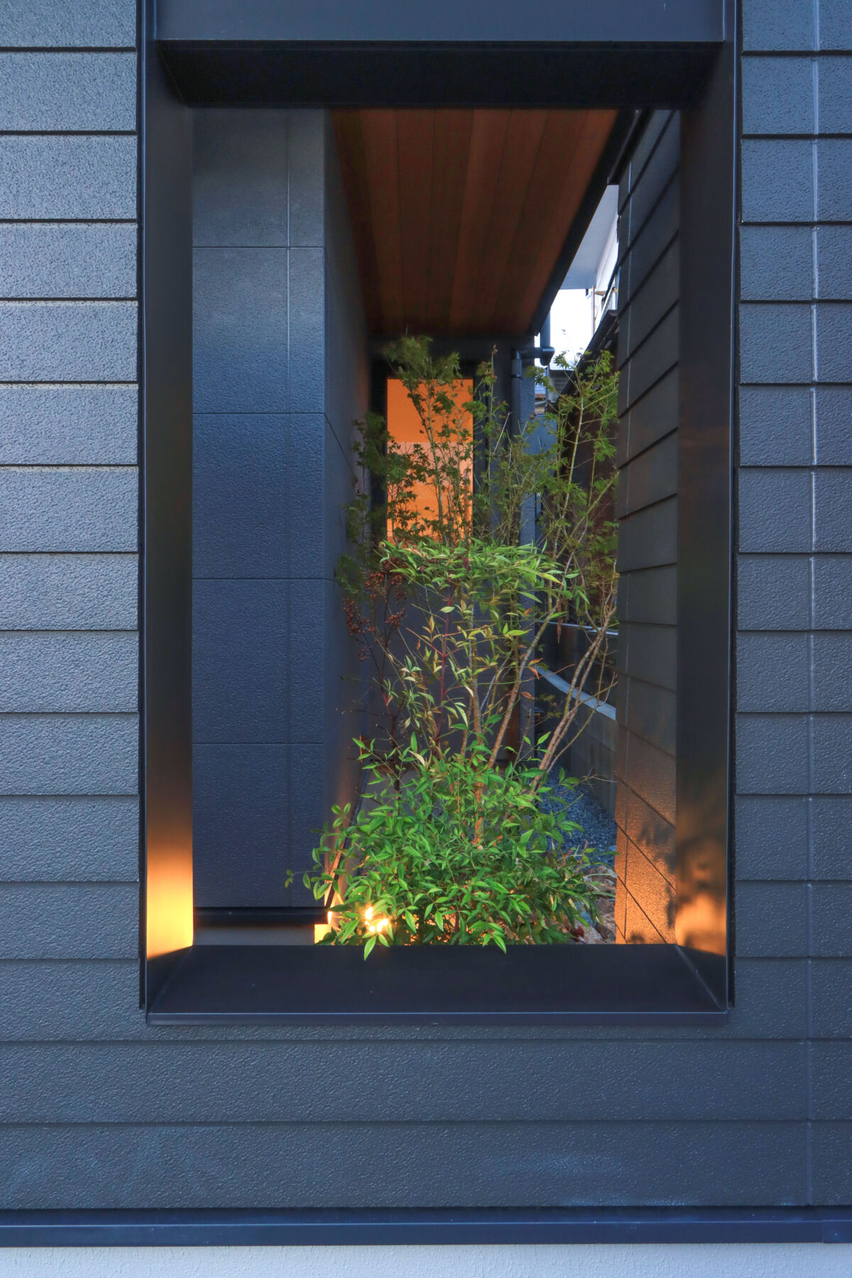 アプローチや中庭の四季折々の緑を暮らしに取り込むため、外観のアクセントにもなる“額縁”のような仕上げをご提案。