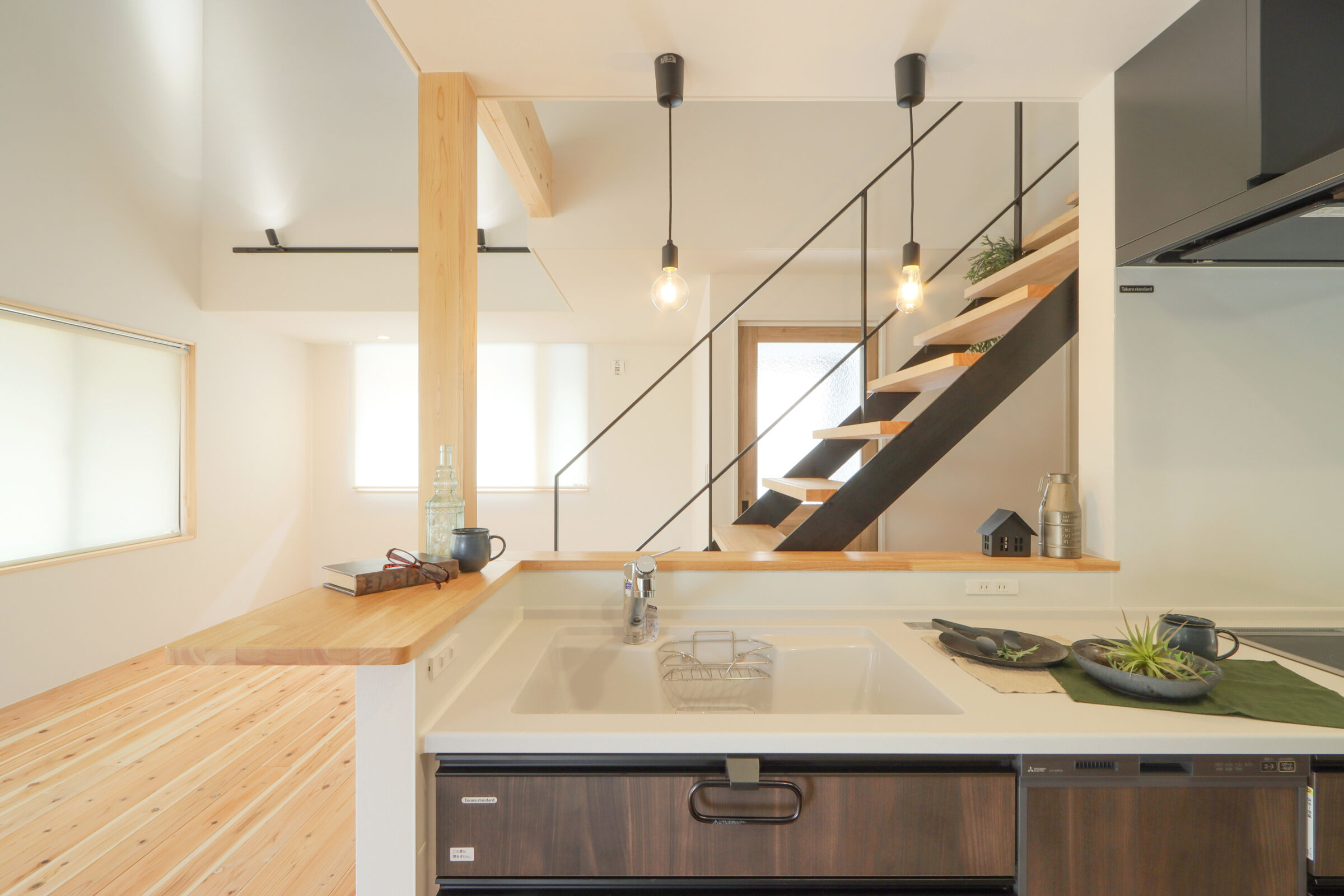 視線が抜ける吹抜けと、スムーズな家事を実現した動線設計。