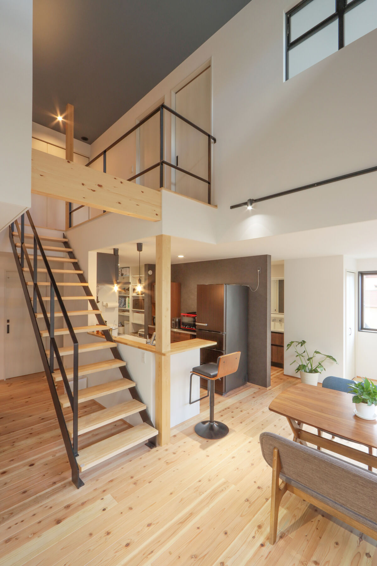 視線が抜ける吹抜けと、スムーズな家事を実現した動線設計。