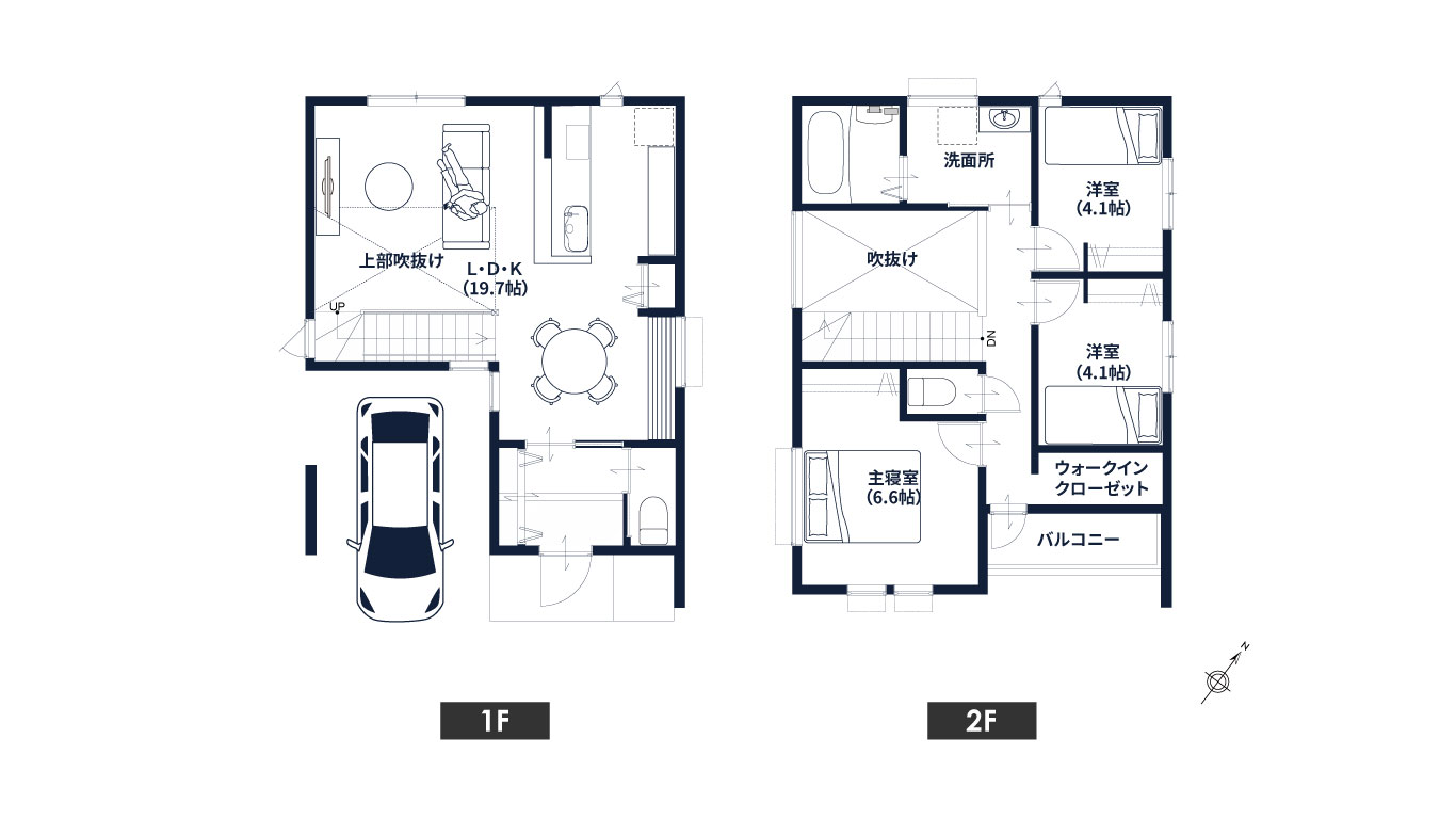 シンプルモダンな外観と吹抜けLDKが特徴のモデルハウス。