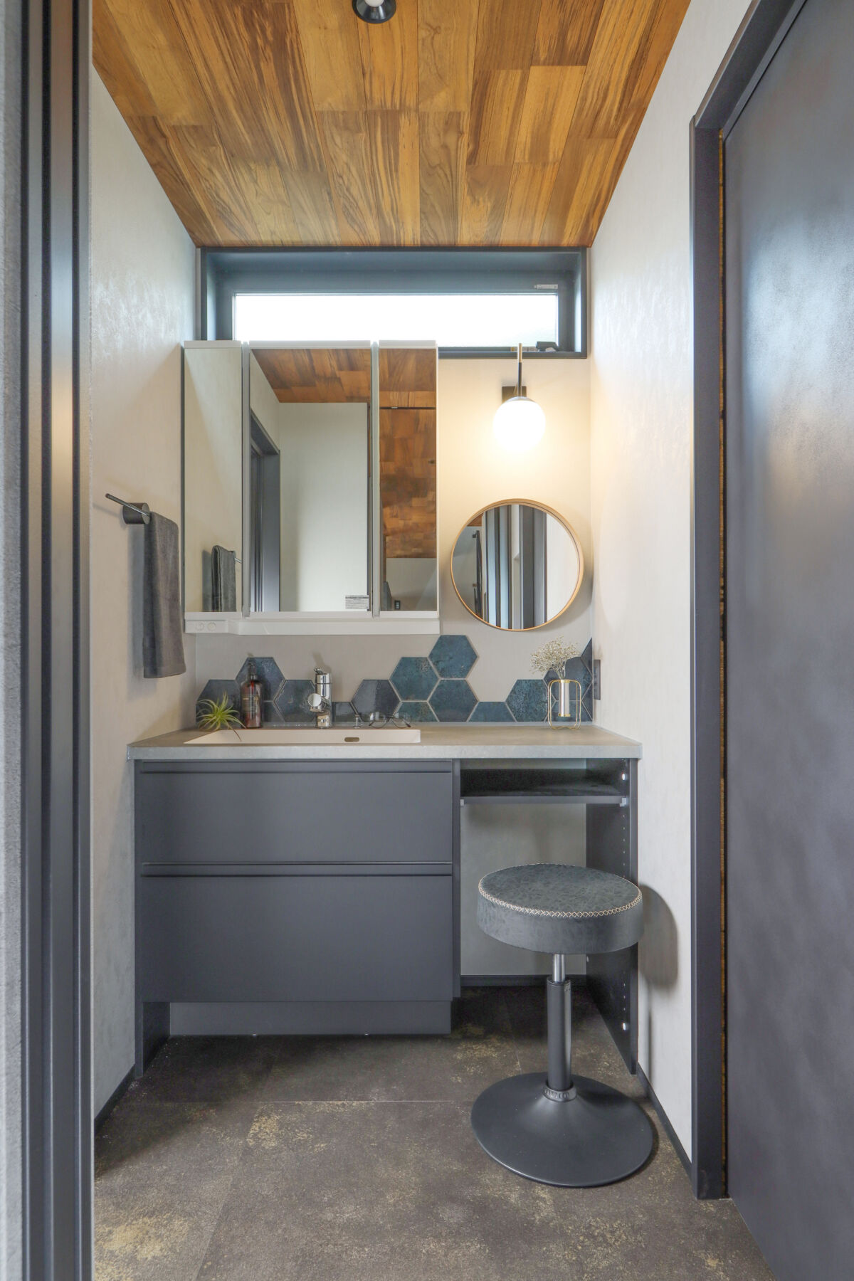 グレー×ブラック×石目柄で統一し、照明計画にこだわった大人かっこいい空間に仕上げました。